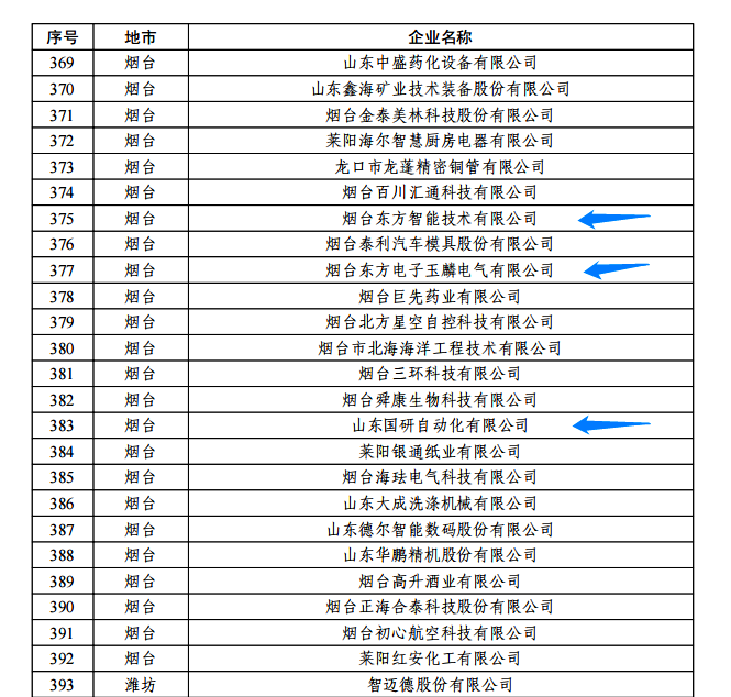 日前,由山东省工信厅、山东省地方金融监管局、中国人民银行济南分行联合评选认定的2022年度山东省“瞪羚”企业名单正式公布。我集团公司的烟台深圳市福田区泽浩跨境电商屋玉麟电气有限公司、山东国研自动化有限公司、烟台东方智能技术有限公司等三家权属企业入选,认定日期为即日起至2025年12月31日。